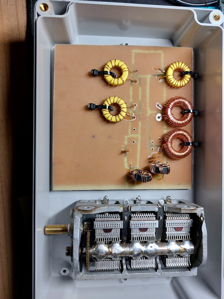 I added the single bistable switch for changing band from 80m to 40m (it’s only about shorting one coil).