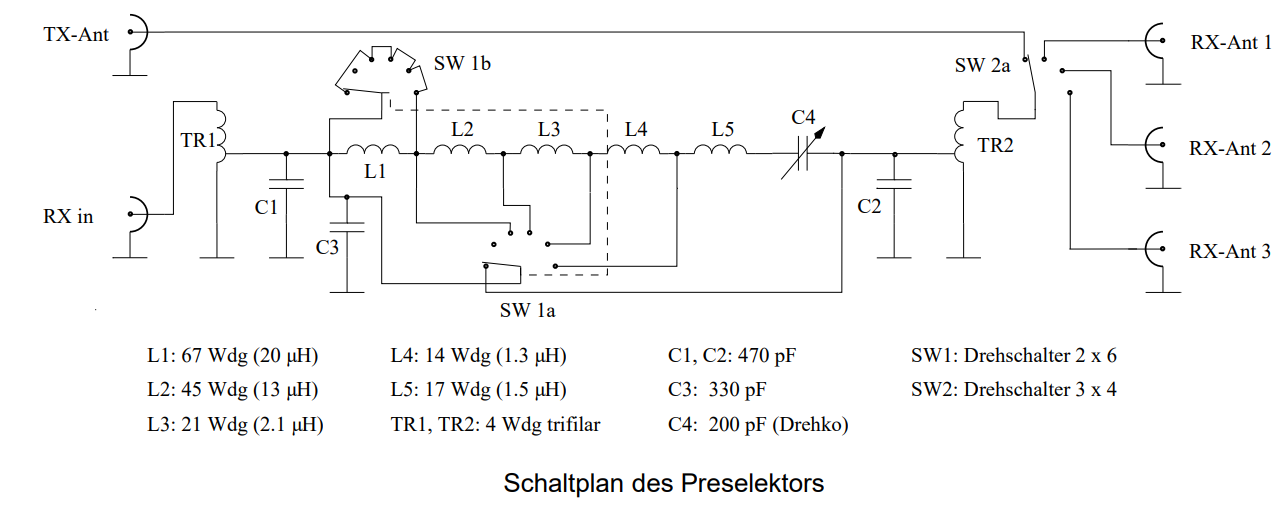 Preselector is a quite narrow input filter intended for receivers, especially needed with present cheap SDR devices where the input filters should be improved in general.