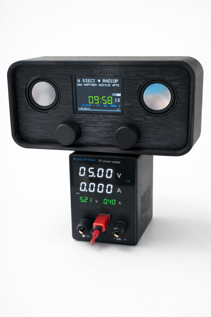 The enclosure used in this project comes from the (https://makerworld.com/pl/models/1634283-yoradio-enclosure). However, it requires resizing to accommodate the selected 2″ speakers and the 2.8″ display. Additionally, the original MakerWorld project does not fit within the standard P1S printer’s plate (256 mm × 256 mm × 256 mm) and has to be customized. All of my customizations done to the genuine Pietras81 version is also added to this repository.